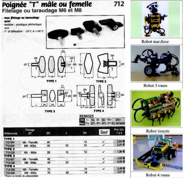 Exemples de solution pour des poignées dans un catalogue ou pour la motorisation d'un robot grâce à la veille technologique.