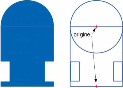 Je distingue un axe de symétrie vertical sur lequel devra se trouver l'origine. Je la choisis au centre du cercle par exemple.