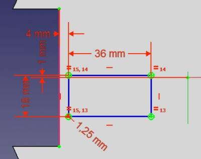 Les 2 petits rectangles, ne se recoupant pas, je peux les dessiner dans la même esquisse en définissant le premier puis en utilisant une symétrie pour le dupliquer. L'esquisse fini, je supprime la matière et la nomme dans l'arbre de création.