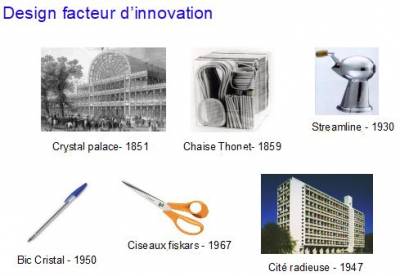 Depuis 1851 et la construction du Cristal Palace à Londres, on parlait d'esthétique industrielle. Les progrès de la Révolution Industrielle ont permis de fabriquer en série plus facilement des objets ou la notion d'esthétique était intégré dès leur conception. Le mot design, venant de l'anglais mais associé en France aux mots dessin et dessein est apparu l'a remplacé.