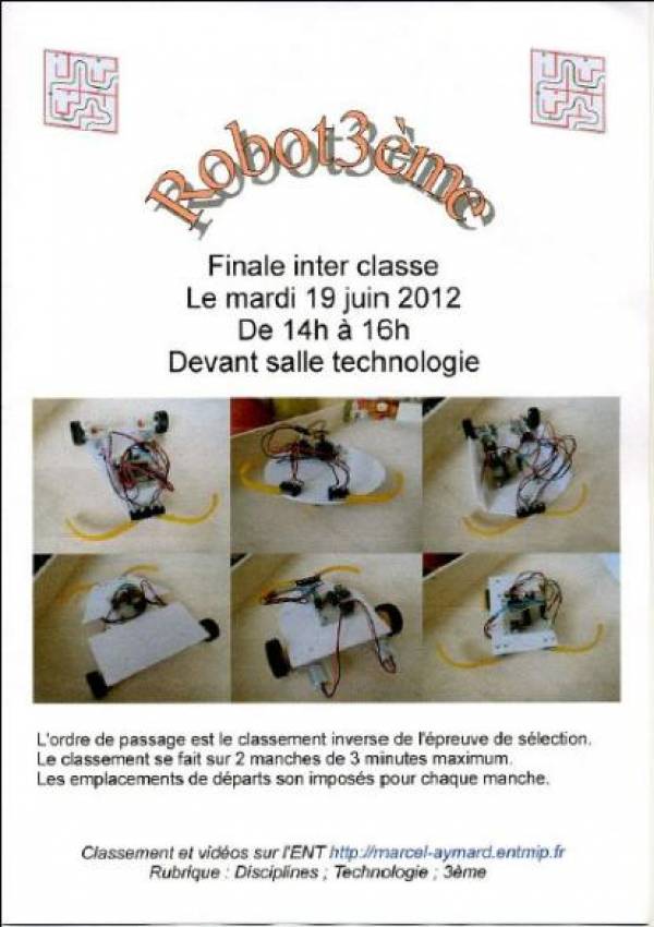 • 2020 - Le concours était transféré au collège Jean-Jaures à Saint-Affrique en même temps que le professeur. Faute de matériel spécifique, il devait utiliser des robots “mBot” programmées pour réaliser un parcours semé d'obstacle. Le COVID et le confinement qui a tronqué le 3ème trimestre en a empêché le déroulement.