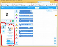 En plus des onglets, objets/lutins et arrière-plan/scène, déjà présents dans SCRATCH, il ajoute un onglet Appareils. Une fois programmés, ces derniers, pourront être utilisés de manière indépendante (sans l'ordinateur) pour piloter des maquettes.
