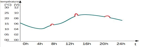 En rouge, des zones déformées du signal (les parasites) qui empêchent de connaitre de façon précise la température réelle.