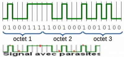 Le signal peut être exprimé sous la forme d'une suite d'informations binaires (0 ou 1) pouvant être regroupés en octets.