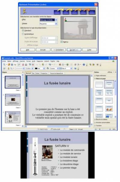 • des animations permettent d'organiser l'ordre des informations transmises sur la diapo.
