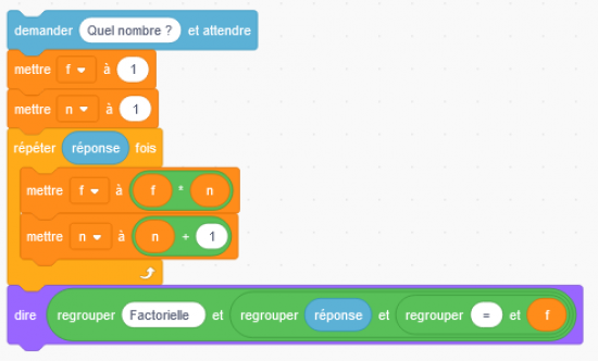 Afficher "Factorielle de ", valeur variable x, " vaut ", valeur variable f