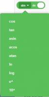 Parmi les opérateurs Scratch et Codabloc, le dernier de la liste donne accès aux fonctions mathématiques. En bloc, l'unité des angles est le degré d'angle.