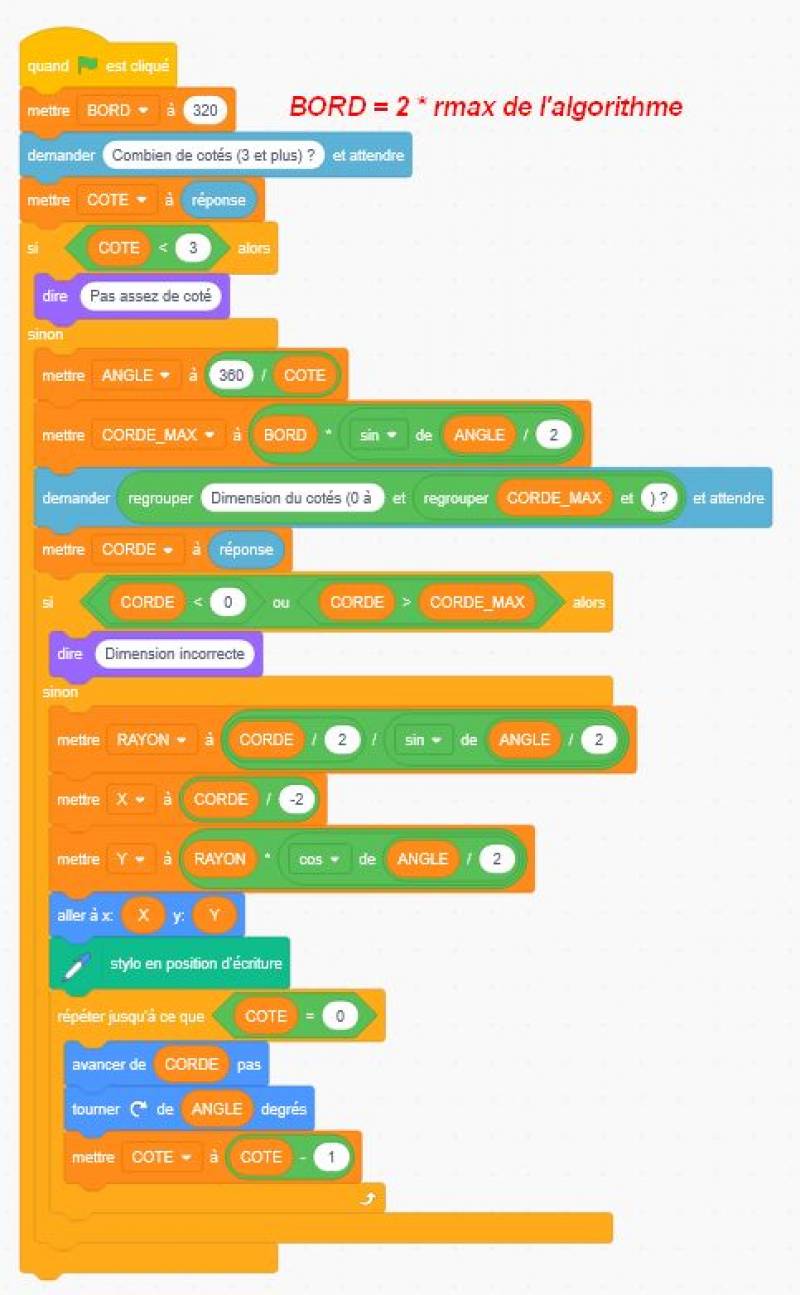 Une fois que la longueur du coté/corde choisi par l'utilisateur est validé, on peu calculer le rayon réel de la figure et commencer le tracé.