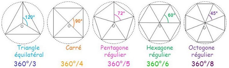 En géométrie (ou sur Internet) j’ai appris que l’angle (a) des polygones réguliers est fonction du nombre (n) de