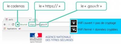• Le protocole HTTPS (Vs. HTTP) crypte les données transmises à partir d'une clé fourni par un organisme certificateur qui garanti l’authenticité du site demandé. Vos données sont sécurisés entre le navigateur et le site web).