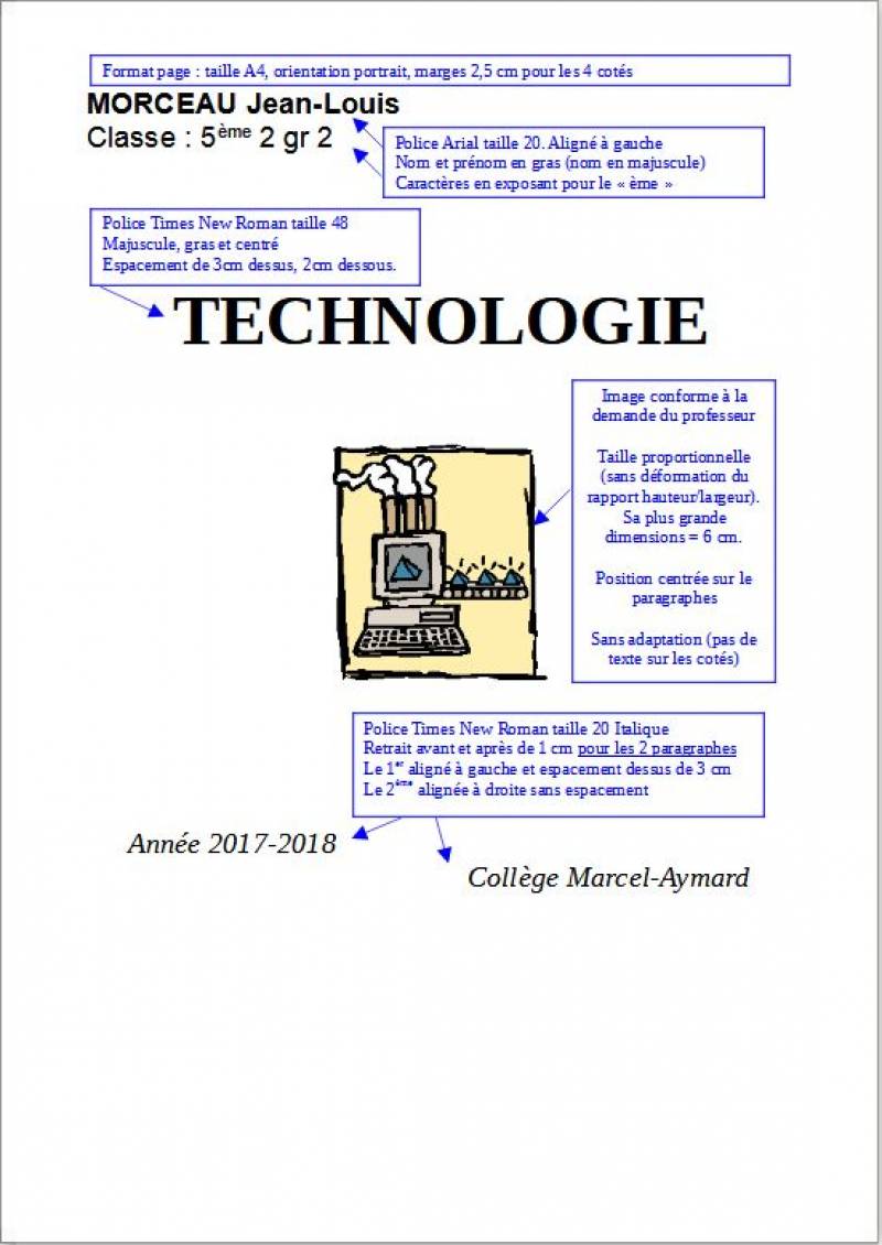• Enregistrer le travail sous le nom “Page de garde”, dans son espace personnel et dans le dossier “Technologie”.