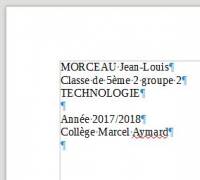 • Saisir les informations demandées (sans faire de mise en forme) en adaptant le modèle à l'élève et l'année scolaire. Il faut 7 paragraphes :
