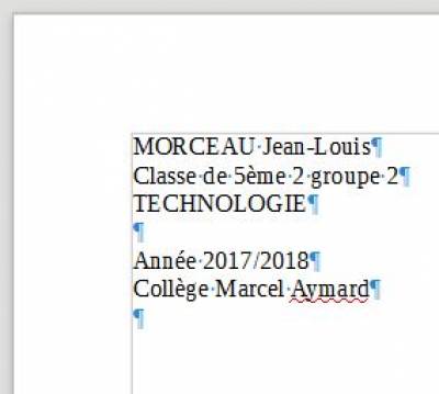 En classe de 6ème, les élèves ont normalement appris à utiliser les principaux attributs des caractères et les alignements de paragraphe. Ils doivent aussi savoir enregistrer leur travail correctement. Dans tout les cas un rappel et une démonstration a eu lieu. Les points nouveaux marges, exposant, espacement … sont vu dans le cours Découverte du traitement de texte et sont affichés durant l'activité.